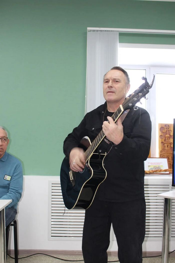 Особое тепло и восторженные аплодисменты вызвал выход на сцену нашего земляка, члена литературного объединения «Грани» Зонального района Николая Михайловича Мокшина. Он порадовал публику не только своим словом, но и авторскими музыкальными номерами, исполнив собственные песни под гитару.