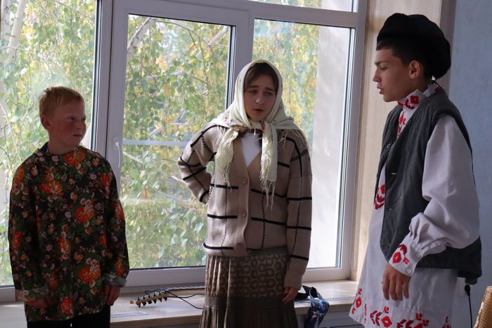 Настя Латышева: Мероприятие насыщено песнями, стихами, музыкой, интересны инсценировки ребят.
