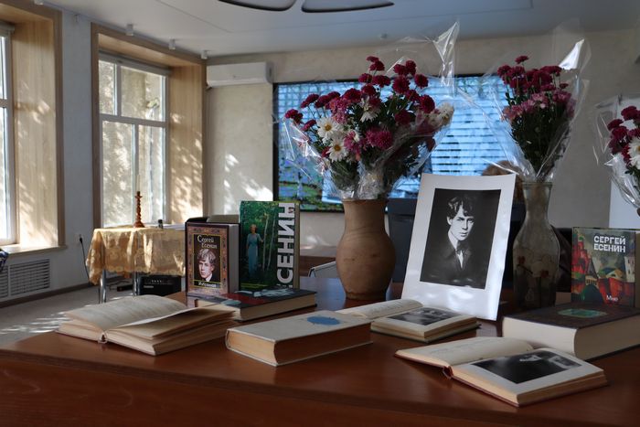 Для зрителей подготовлена книжная выставка «Есенин и эпоха: 130 лет вдохновения».