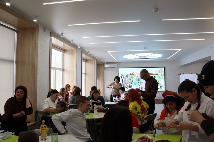 Максим Дмитриевич Тихонов, папа: «С удовольствием поиграл в игру «Ручеек», понравилось, что ребята после танца пригласили гостей и получился длинный ручеек. Творческое задание вызвало особое вдохновение, каждый из нашей семьи вырезал фигурку в национальном костюме, хотелось побыстрее склеить и найти пару».