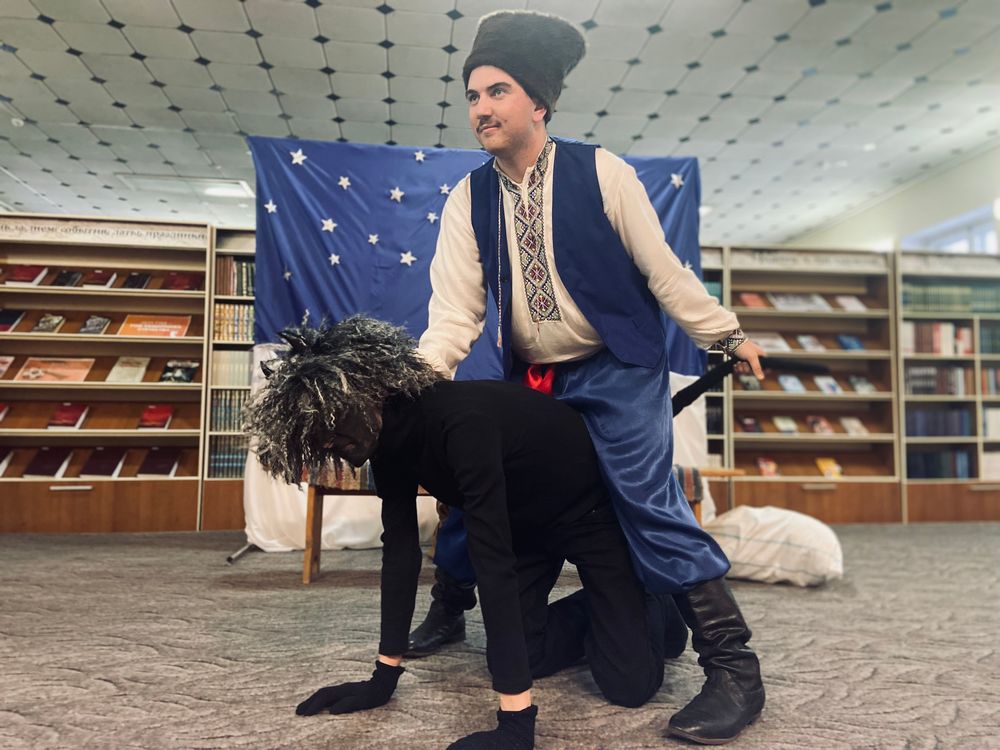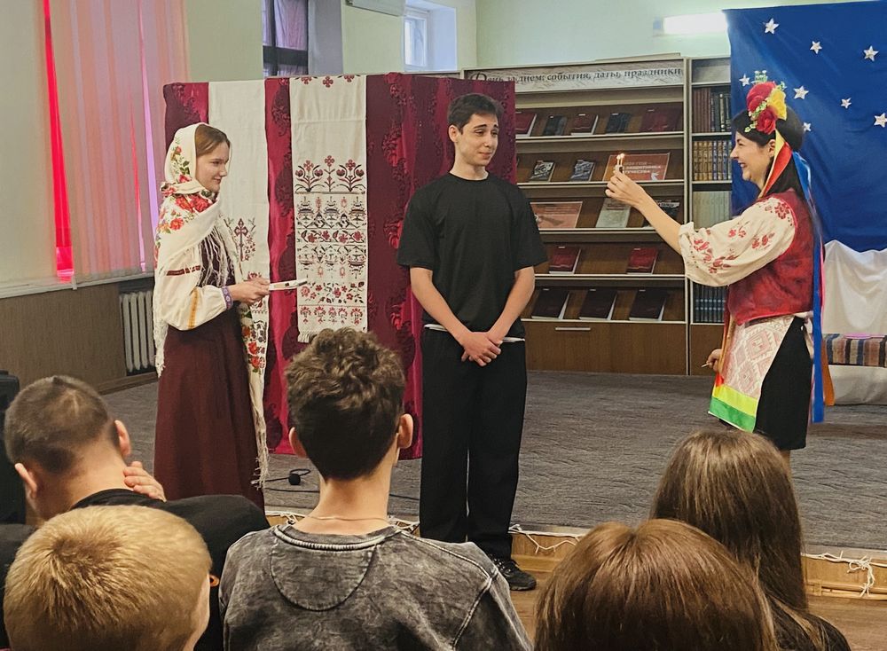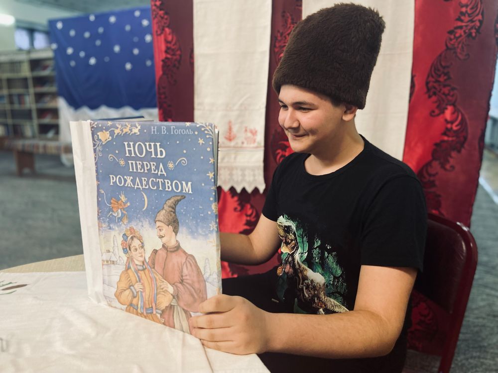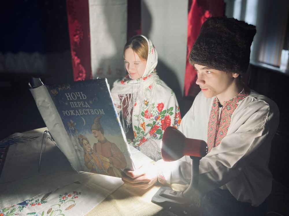 Читальный зал превратился в настоящую украинскую деревню, наполненную таинственным духом гоголевской повести, в которой переплетаются разные элементы: чудеса, народные обычаи и комические ситуации. Костюмы актеров, декорации, музыкальное сопровождение – все было продумано до мелочей, чтобы погрузить зрителей в атмосферу волшебства и мистики. С первых минут представления юные актеры захватили внимание публики.