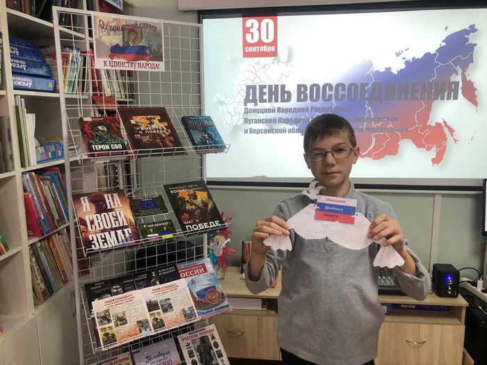 30 сентября в Бобровской модельной библиотеке МБУК «Многофункциональный культурный центр» Первомайского района состоялся исторический экскурс по материалам Регионального центра доступа к ресурсам Президентской библиотеки в Алтайском крае для ребят 7-х классов Бобровской СОШ. Это был особенный исторический час, посвященный важному событию в истории нашей страны – воссоединению Донбасса, Запорожской и Херсонской областей с Россией. Это было настоящее погружение в прошлое, которое помогло всем присутствующим лучше понять, как мы стали единым государством.