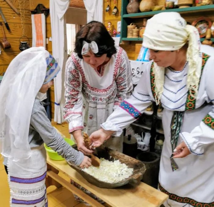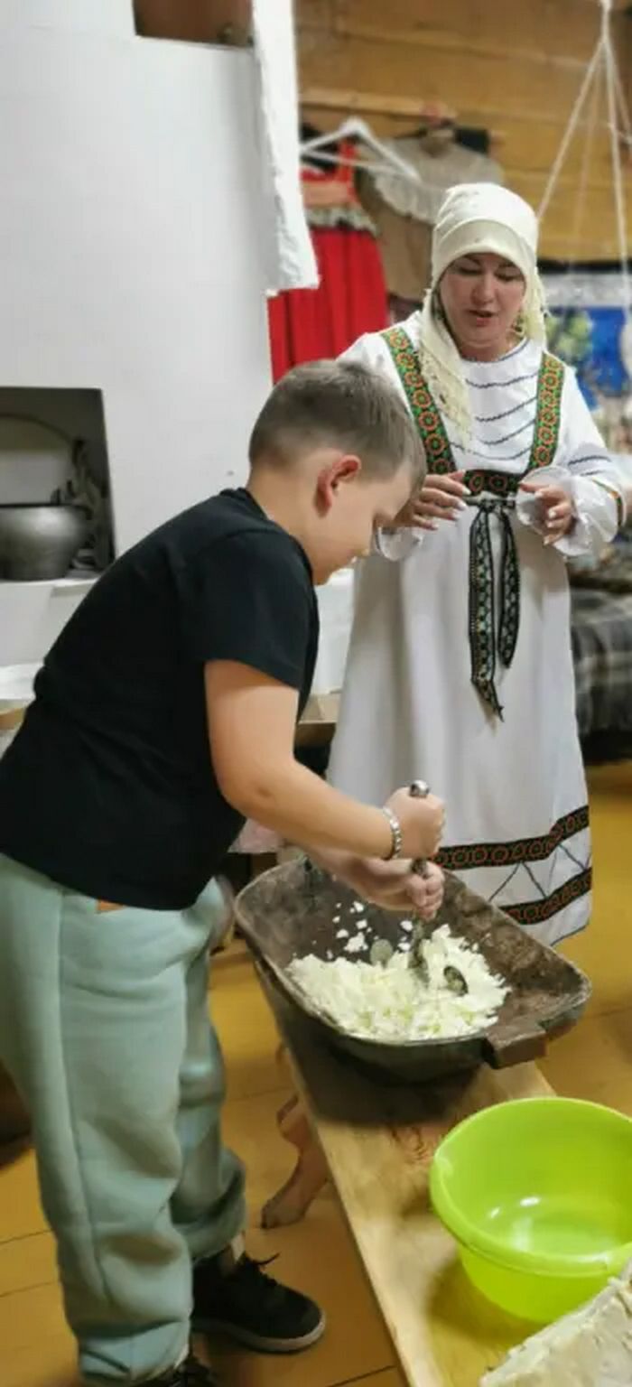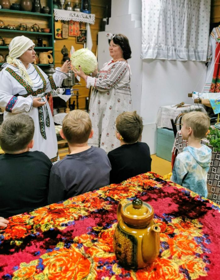 Настоящим украшением дня стал мастер-класс, во время которого ребята смогли почувствовать себя настоящими хозяюшками и хозяевами, как это делали наши прабабушки. Они учились ловко рубить капусту, представляя, как наши предки готовили ее для всей семьи.
